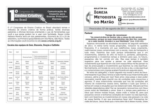 de nosso investimento. Sábado, 19h30: Culto de louvor.