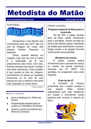 O boletim informativo da Igreja Metodista do Matão anuncia: