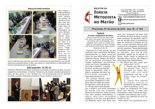 O documento relata sobre um almoço de confraternização realizado pela Escola Dominical da Igreja Metodista No Matão para fechar o mês da família, com compartilhamento de comidas e momentos de oração. Também menciona o culto vespertino sobre a família e as atividades da semana na igreja.