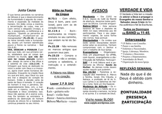 3) Informações sobre o programa de televisão "Verdade e Vida" e uma reflexão semanal sobre a importância da pontualidade