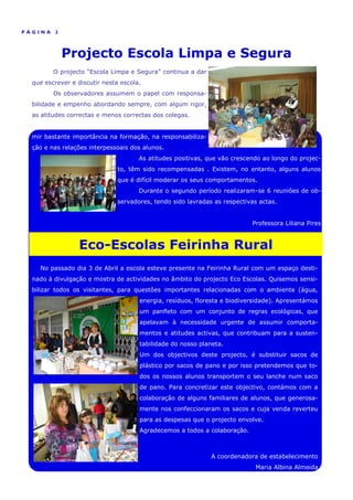 2) Também discute projetos como "Escola Limpa e Segura" e o dia da árvore, onde alunos, professores e comunidade plantaram árvores na escola e no parque.