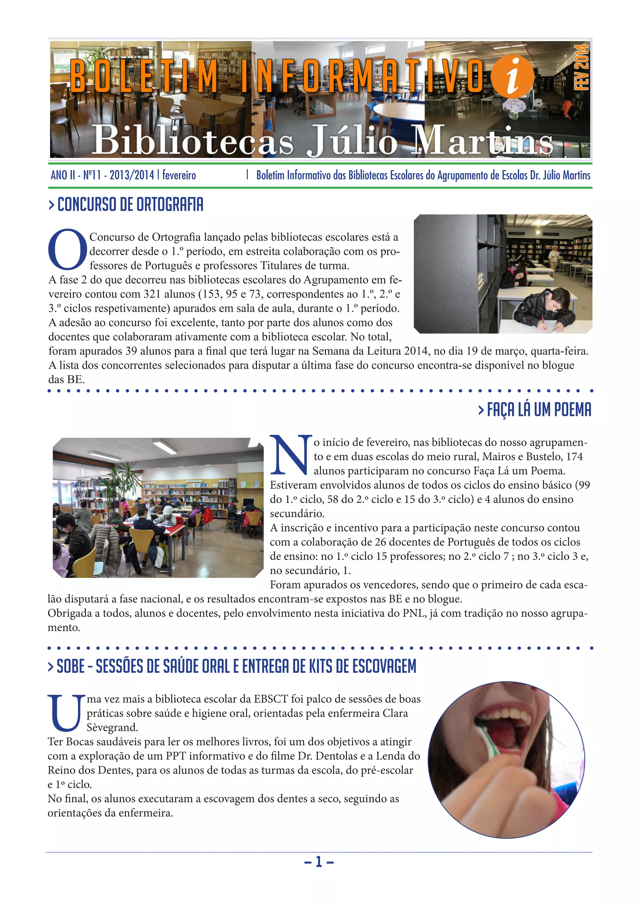 ANO II -Nº11 - 2013/2014 | fevereiro | Boletim Informativo das Bibliotecas Escolares do Agrupamento de Escolas Dr. Júlio Martins