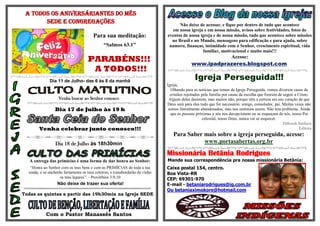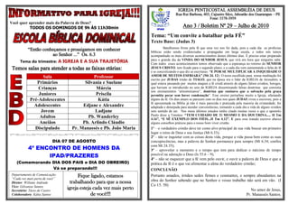 Este boletim da Igreja Pentecostal Assembléia de Deus de Prazeres contém: