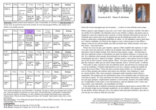 1) O documento apresenta o calendário de atividades religiosas em uma paróquia para as próximas semanas, incluindo missas, adorações, catequeses e retiros.