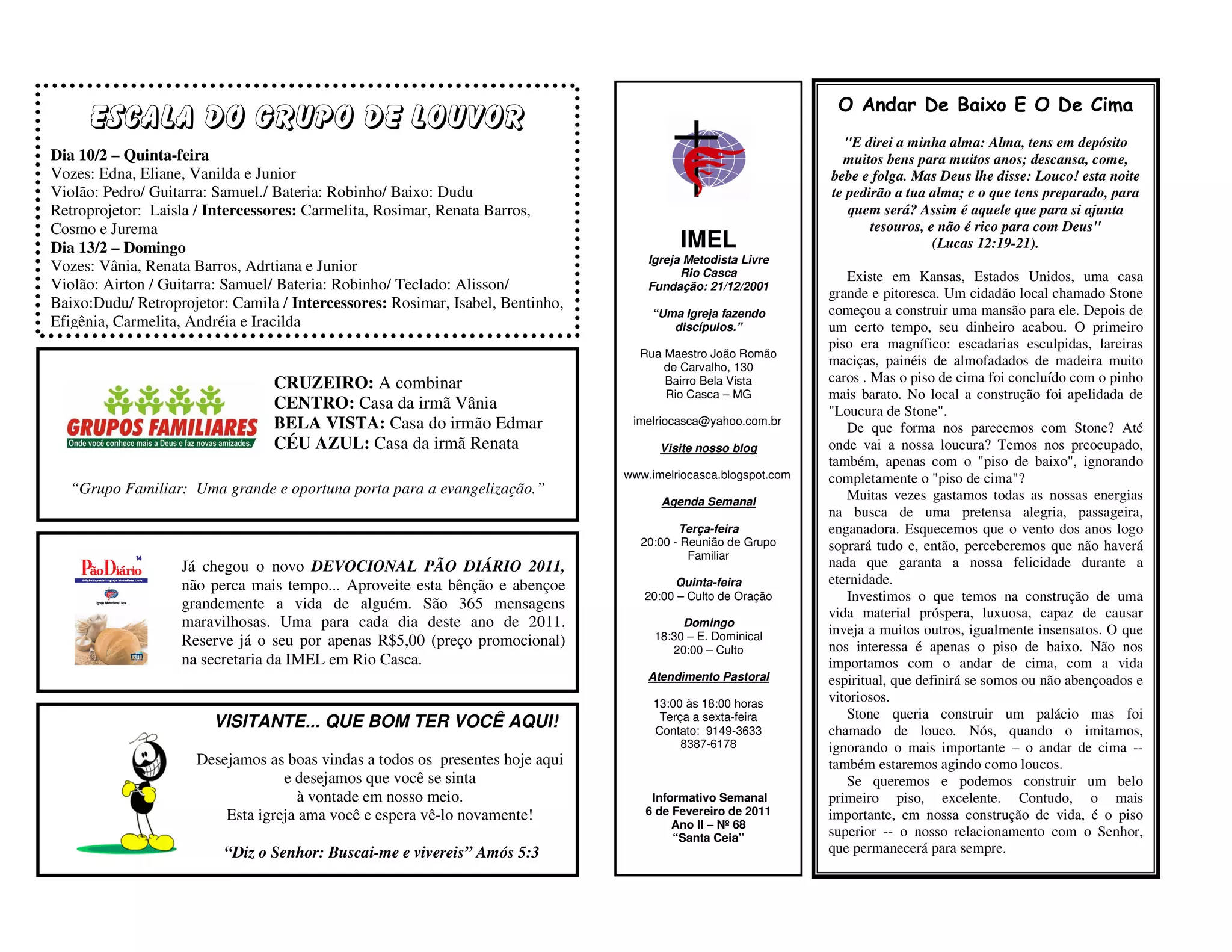 1) A igreja Metodista Livre de Rio Casca está organizando um retiro de carnaval em março e pedindo doações financeiras para isso.