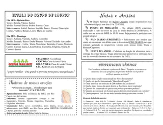 Este boletim informativo de igreja fornece atualizações sobre os serviços religiosos, grupos de estudo bíblico, doações, orações e aniversariantes. Ele também discute temas familiares e educacionais, incluindo a orientação cristã da sexualidade e como ser bem-sucedido como pais.