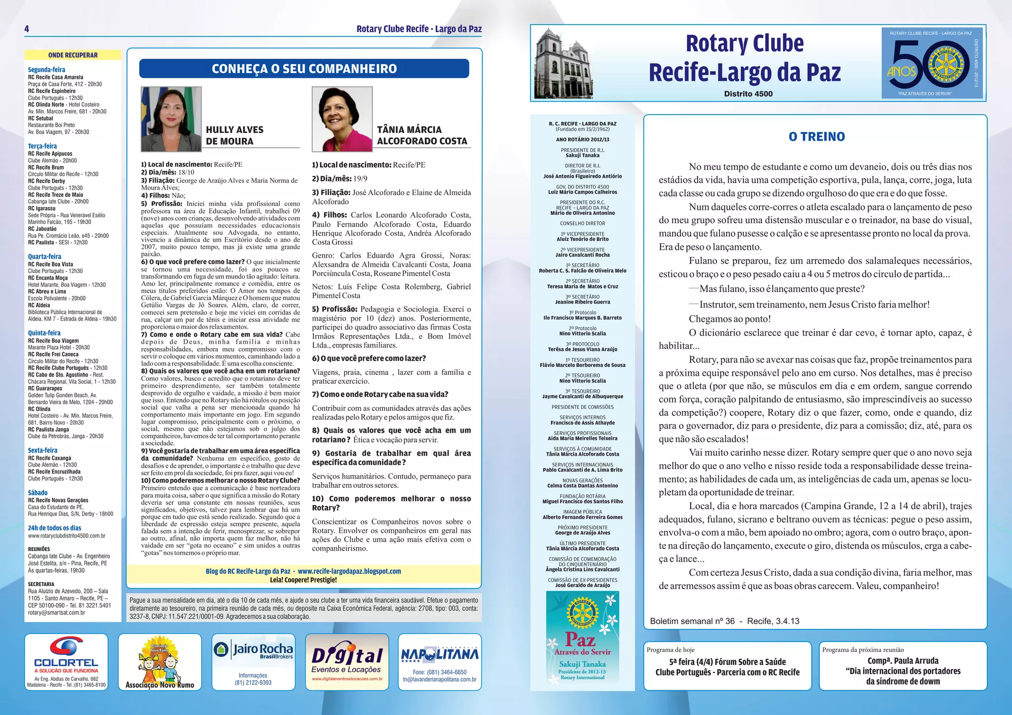 1) O documento lista os locais e horários de reuniões semanais de vários Rotary Clubes de Recife e arredores.