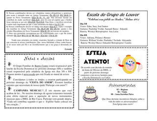 O documento anuncia três campanhas da Igreja Metodista Livre em Rio Casca: 1) a Campanha do Real Missionário para arrecadação de doações; 2) a Campanha do Avivamento Pessoal para busca da santificação; e 3) a Campanha Sou Metodista, Sou Pontual para incentivar a pontualidade nos cultos com prêmios. Também fornece informações sobre os horários dos cultos e reuniões da igreja.