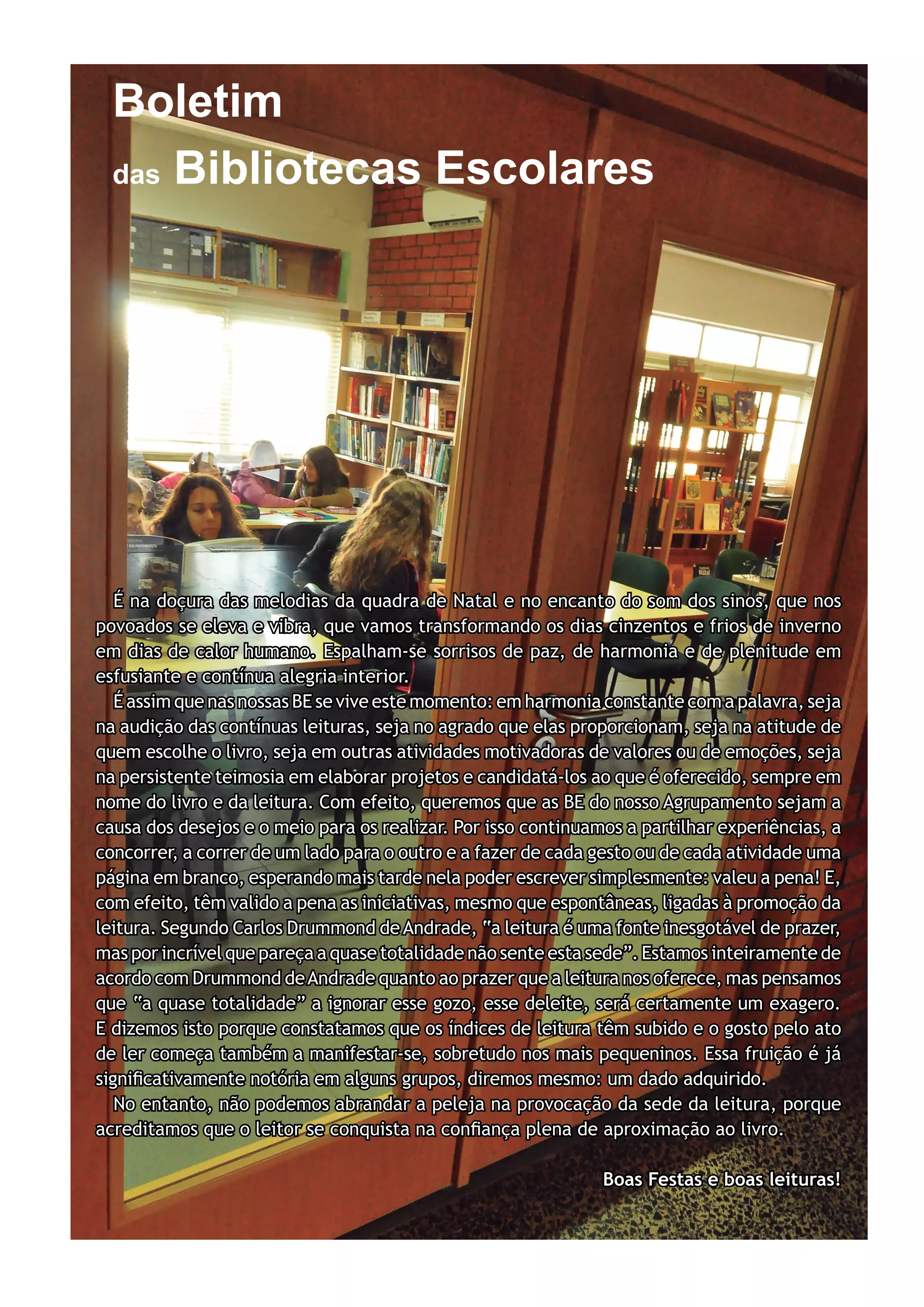 O documento descreve as atividades realizadas nas bibliotecas escolares para celebrar o mês de outubro dedicado às bibliotecas escolares, incluindo a leitura da história "Os animais estavam zangados" para alunos do 1o ano, uma exposição sobre a história do livro, e uma oficina de escrita para os alunos.