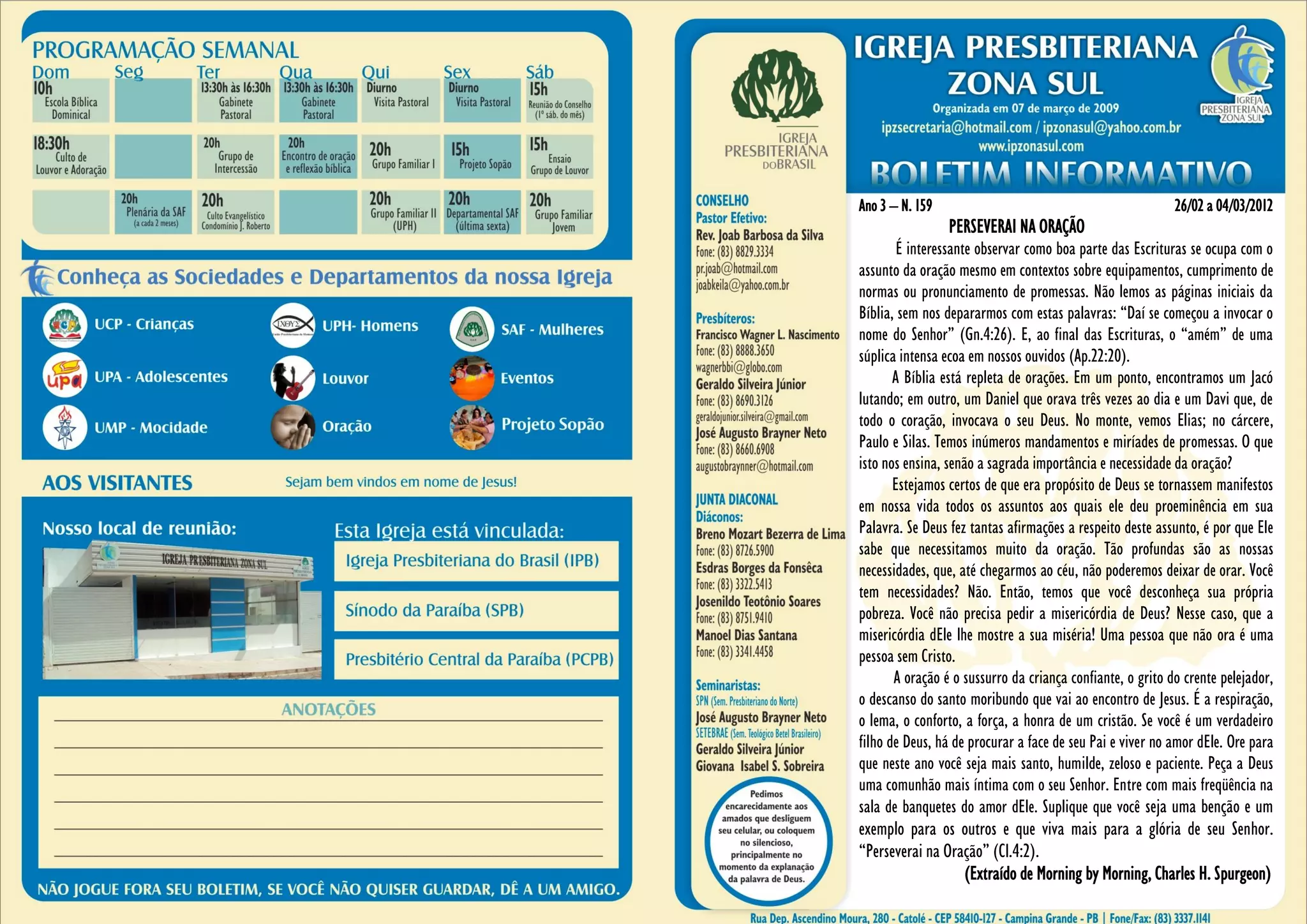 O documento discute a importância da oração de acordo com a Bíblia e ensina que devemos orar frequentemente e com fé. Também anuncia eventos na igreja como um dia de oração, evangelismo e um chá para as mulheres em celebração ao Dia Internacional da Mulher.