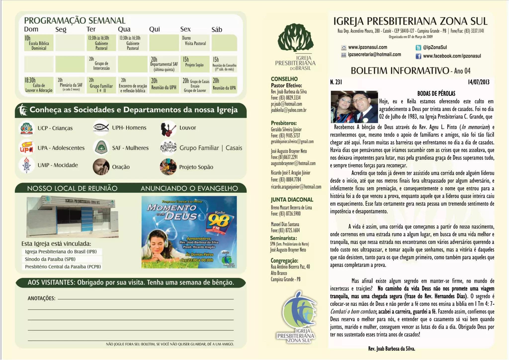 Presbiterianas: IPR CG, IPR Queimadas e IP Zona Sul. Para você