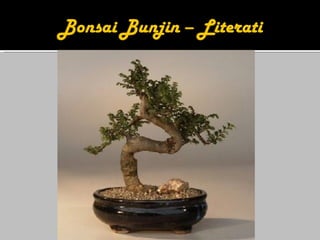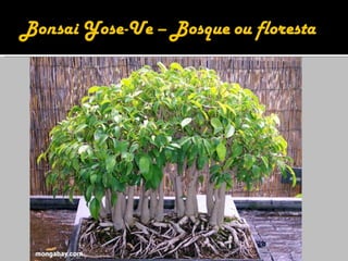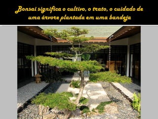 3) A arte do bonsai busca replicar em miniatura as características e beleza de árvores naturais através de técnicas como poda, amarração