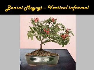 2) Existem diferentes estilos e métodos de cultivo de bonsai, como usar raízes que agarram rochas, cultivar a partir de sementes ou mudas colhidas na natureza.