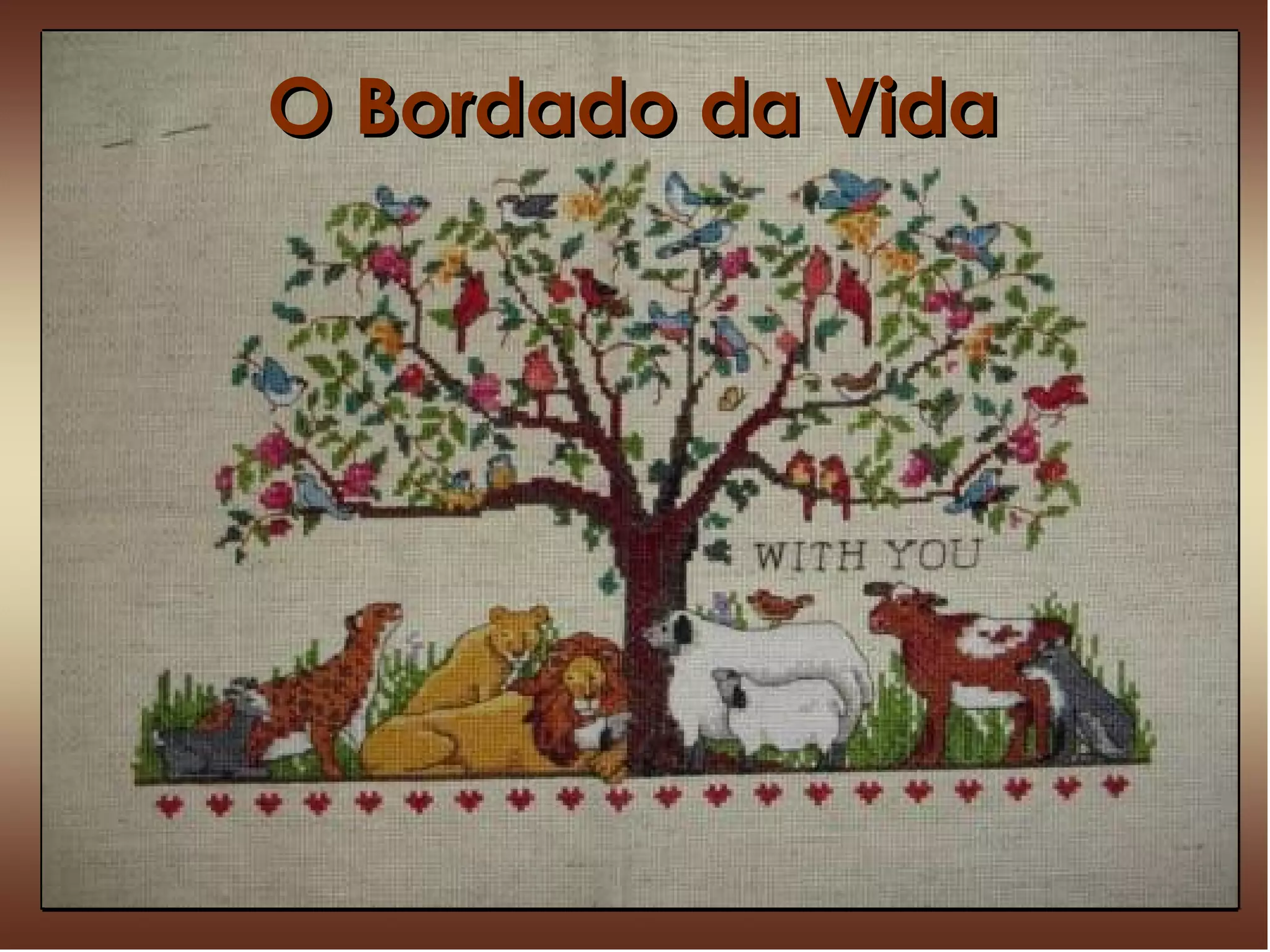 O autor compara sua vida às costuras confusas de sua mãe, que de baixo pareciam desordenadas mas de cima formavam um belo desenho. Da mesma forma, os problemas da vida podem parecer confusos, mas Deus está "bordando" um plano maior que o autor só entenderá quando estiver "no colo de Deus".