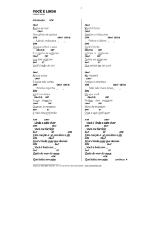 O documento apresenta uma lista de 34 canções de Caetano Veloso. A lista inclui títulos populares como "Garota de Ipanema", "Samba de Uma Nota Só" e "Alegria, Alegria" junto com outras menos conhecidas. A lista parece ser um índice ou guia para as letras e cifras das músicas.