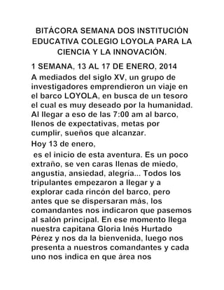 Bitácora semana dos institución educativa colegio loyola para la ciencia y la...