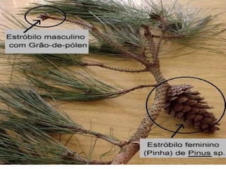 O documento descreve as principais características dos diferentes grupos de vegetais. Apresenta os representantes dos vegetais inferiores, intermediários e superiores e suas relações filogenéticas. Descreve as briófitas, suas características, ciclo de vida e reprodução. Em seguida, fala sobre as pteridófitas, com ênfase em suas características morfológicas e de reprodução. Por fim, aborda brevemente as gimnospermas e angiospermas.