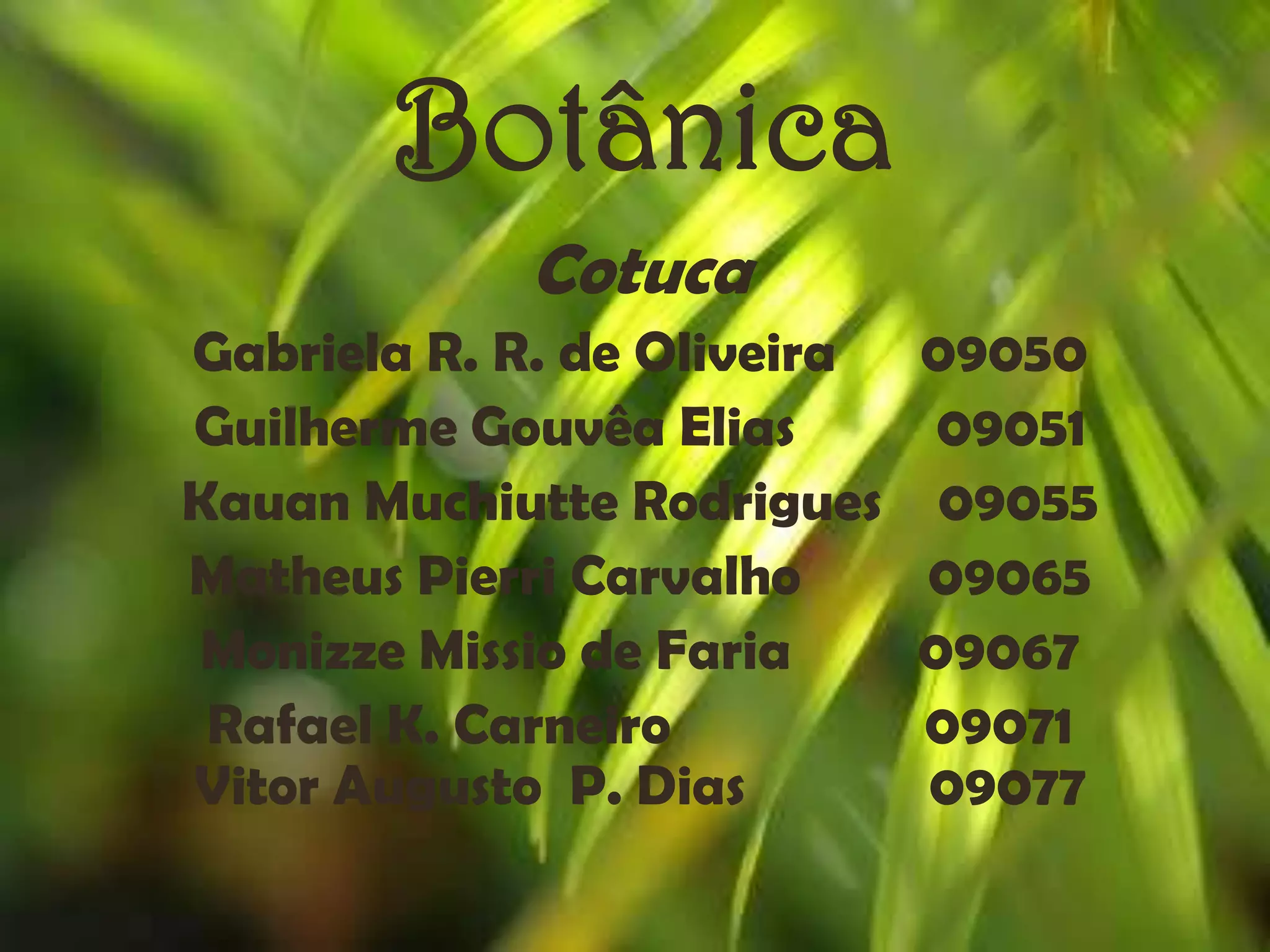 O documento apresenta informações sobre botânica, incluindo o esquema evolutivo do reino vegetal, as principais divisões de plantas, órgãos vegetais, e exemplos de plantas com suas propriedades e usos.