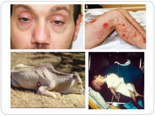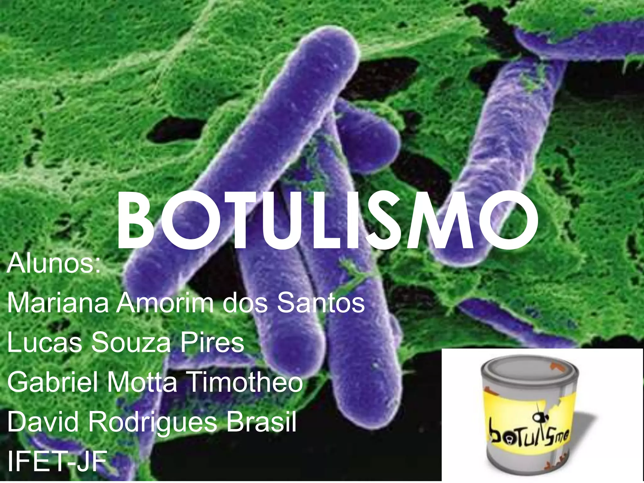 O documento resume as principais informações sobre o botulismo, doença causada pela toxina produzida pela bactéria Clostridium botulinum. Apresenta os tipos de botulismo, sintomas, tratamento com antitoxina e a importância da prevenção por meio de boas práticas de conservação de alimentos.