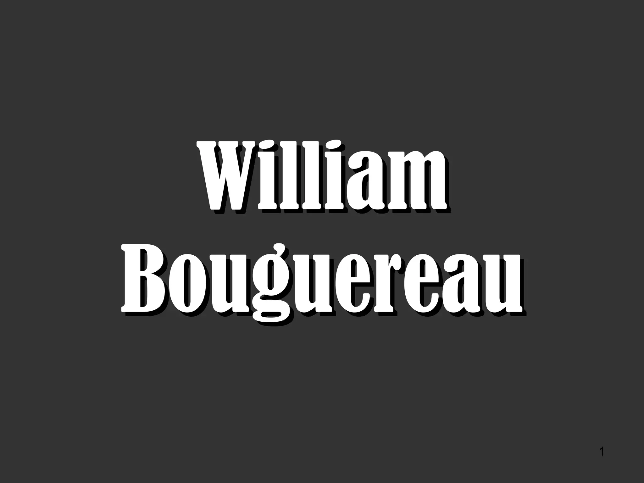 William Bouguereau foi um pintor acadêmico francês nascido em 1825 em La Rochelle, onde faleceu em 1905. Ele estudou na Academia e foi professor, retratando cenas mitológicas e alegóricas em um estilo idealizado e detalhista. A biografia lista muitas de suas obras, como "Auto-Retrato" de 1886 e "As Ninfas" de 1878, abrangendo temas como mitologia, religião e pastoral.