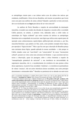 3) Há também questionamentos sobre transpor pares de oposição culturais específicos da sociedade Cabila para analisar dom