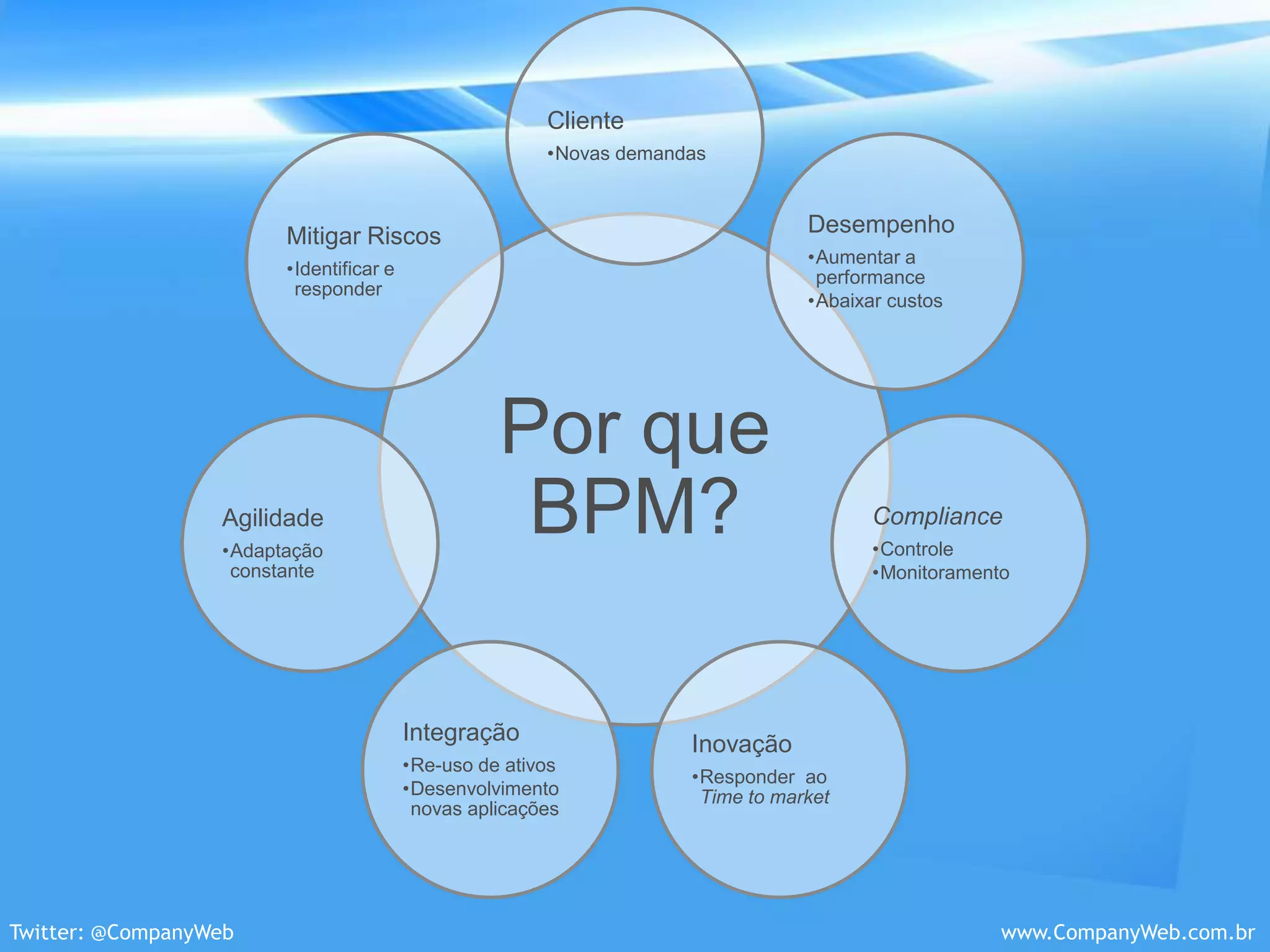O documento discute a importância da gestão por processos para as empresas e como sistemas de gerenciamento de processos de negócios (BPMS) podem ajudar. Ele destaca que apenas 33% dos processos de negócios estão documentados, comunicados e automatizados, e discute como BPMS podem melhorar a documentação, comunicação e automação dos processos para trazer economias e melhorias contínuas. O documento também discute a necessidade de começar pequeno com projetos piloto e crescer gradualmente ao longo do tempo.
