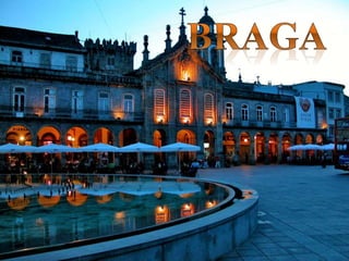O documento descreve as características da cidade de Braga em Portugal. Braga é apontada como uma das cidades mais jovens da União Europeia e destaca-se por seus diversos eventos culturais e atrações turísticas como patrimônio histórico e religioso. O turista médio em Braga é português, viaja em família para lazer e aprecia a gastronomia local.