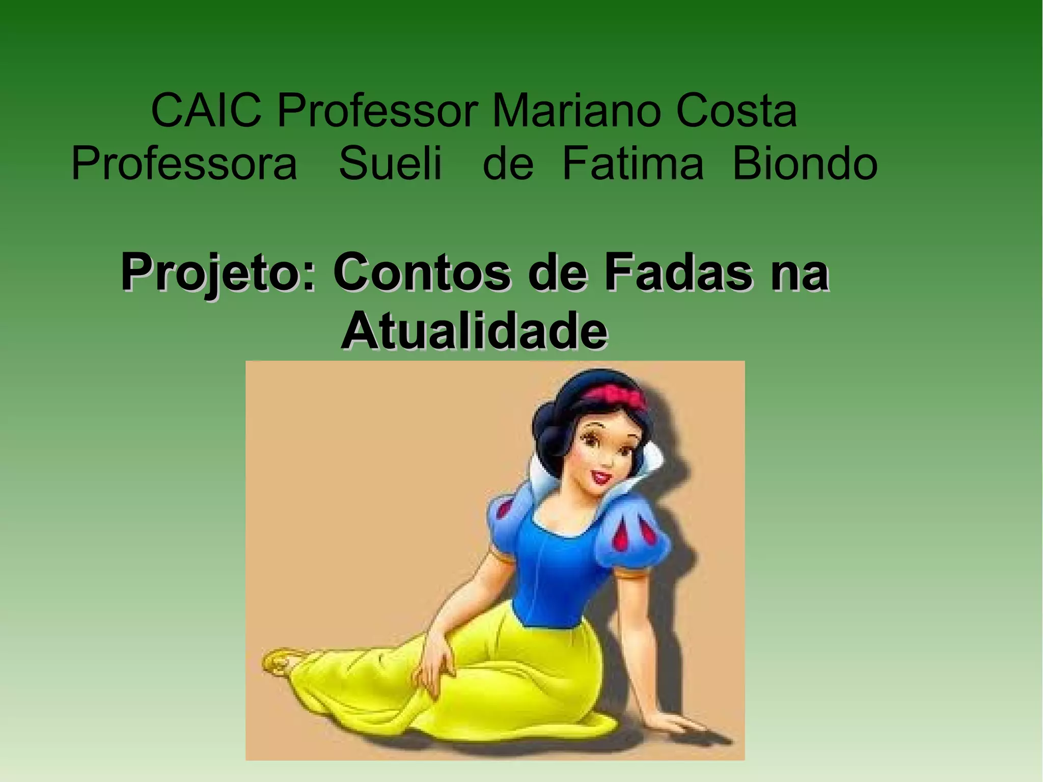 Branca de Neve cresceu mais bela que sua madrasta, que ficou com inveja e mandou matá-la. Branca de Neve fugiu para a floresta e encontrou uma casa de sete anões, onde passou a morar. Sua madrasta tentou envenená-la com uma maçã, mas foi salva por um beijo de amor de um príncipe, com quem se casou e viveram felizes para sempre.