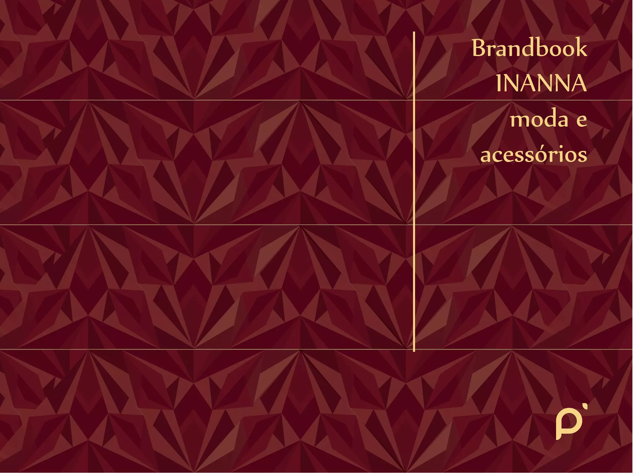 O documento apresenta o Brandbook da marca INANNA de moda e acessórios. O Brandbook define como a marca deve ser aplicada e garantir visibilidade correta. A marca se inspira no poder místico da deusa Inanna para os povos antigos, representado pelo logotipo em forma de estrela. O Brandbook também especifica as cores, tipografia, construção de grids e alfabeto da marca.