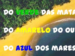 O documento descreve as diversas regiões e atrações naturais e culturais do Brasil, incluindo suas florestas, praias, cidades e estados. Ele destaca a grande biodiversidade do país, abrigando 20% de todas as espécies do planeta, e sua história como nação independente com uma população atual de mais de 188 milhões de habitantes. O texto é acompanhado por fotos que ilustram paisagens e locais de diferentes estados brasileiros.