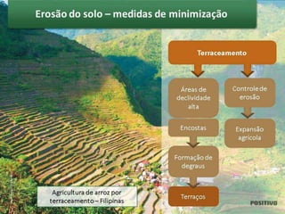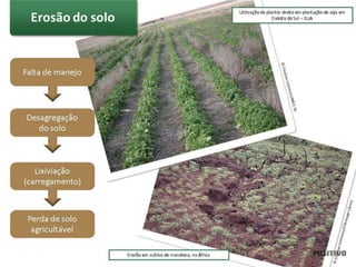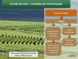 A erosão do solo pode ser reduzida por meio do manejo adequado do solo, como plantio direto e rotação de culturas, que melhoram a cobertura e estrutura do solo e minimizam o impacto da chuva. Técnicas agrícolas sustentáveis preservam a fertilidade do solo a longo prazo e protegem o meio ambiente.