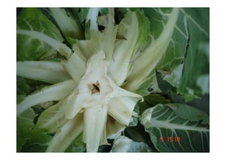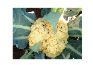 Este documento fornece informações sobre diversas variedades de couve e brócolos, incluindo suas características, cultivo, doenças e pragas. Resume as principais culturas da família Brassicaceae, seus requisitos para produção, doenças comuns e aspectos econômicos.