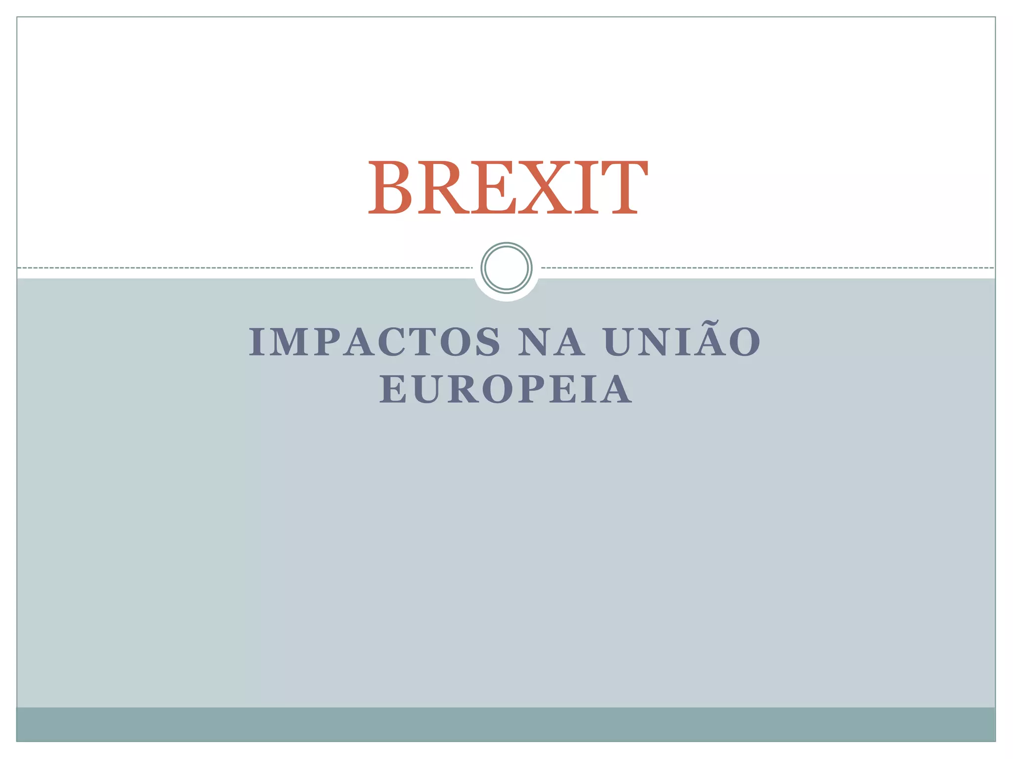 O documento descreve o conceito de Brexit, a história da União Europeia e os impactos da saída do Reino Unido do bloco. A União Europeia foi criada em 1992 para fortalecer a economia dos países membros. Em 2016, o Reino Unido decidiu sair da UE após um plebiscito onde 51,9% dos britânicos votaram pelo Brexit. A saída pode enfraquecer a União Europeia e reduzir o status econômico do Reino Unido dentro do bloco.