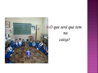 O documento descreve atividades realizadas em anos 12 e 13, incluindo explorar o conteúdo de uma caixa misteriosa, conhecer um livro de projeto literário de troca de livros e criar capas originais para um CD de cantigas. O poema destaca aspectos da imaginação e alegria típicas da infância, como brincar sozinha, contar estrelas, assistir filmes na cama e dançar na chuva.