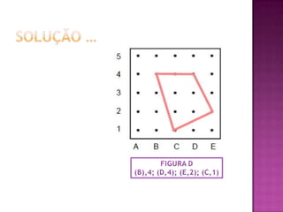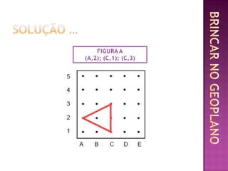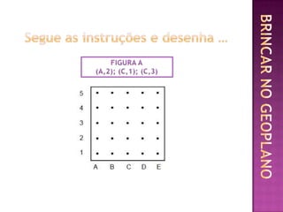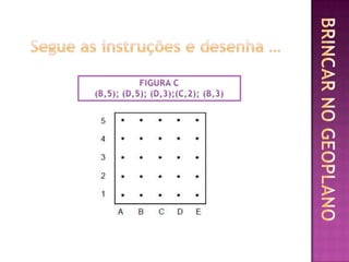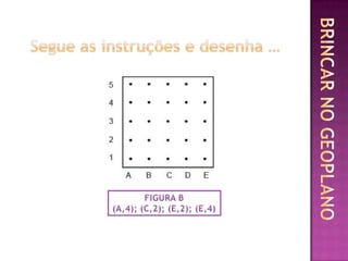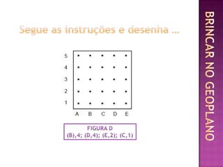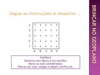 A instrução pede para desenhar figuras geométricas usando uma grelha, nomear cada figura, e calcular o perímetro de cada uma medindo com uma régua. Links são fornecidos para jogos online relacionados a geometria que podem ajudar no entendimento dos conceitos.