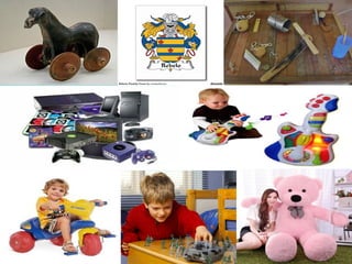 O documento discute o conceito de brinquedo, sua história e alguns dos brinquedos mais antigos. Afirma que brinquedos servem propósitos de desenvolvimento e diversão para crianças, e que até objetos simples como pedaços de madeira podem ser excelentes brinquedos. Também menciona alguns tipos populares de brinquedos como bonecas e bolas, e o processo de reciclagem.