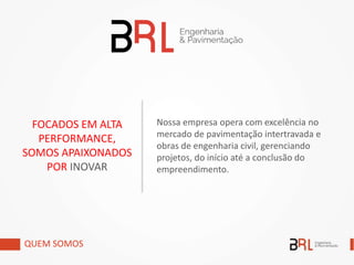 A empresa opera no mercado de pavimentação intertravada e engenharia civil, gerenciando projetos desde o início até a conclusão. Oferece soluções de pavimentação mecanizada de intertravados com alta produtividade e possui credenciais para projetos de engenharia elétrica, hidráulica e construção civil. Realizou projetos como a pavimentação do Parque Olímpico do Rio 2016.