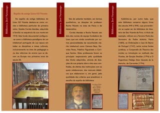 O documento descreve o espólio da antiga biblioteca do Liceu Gil Vicente, destacando o núcleo da biblioteca particular do primeiro reitor Gastão Corrêa Mendes. Outros professores como Rocha Peixoto e Câmara Reys também contribuíram com doações qualificadas. A biblioteca conserva livros dos séculos XVII e XVIII, possivelmente da biblioteca do Mosteiro de São Vicente de Fora.