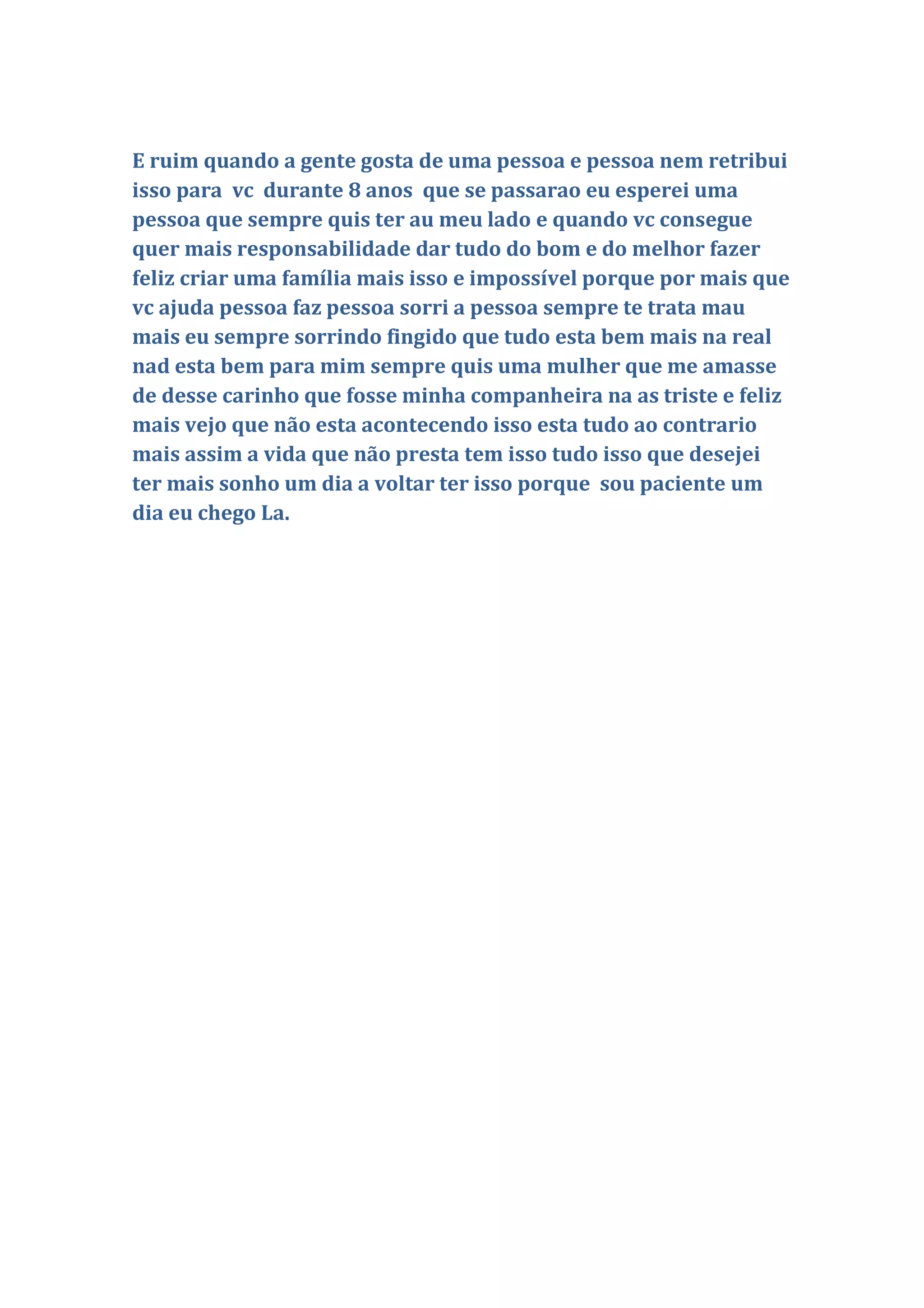O autor esperou por 8 anos que uma pessoa o amasse e o tratasse bem, mas ela sempre o tratou mal apesar de sua ajuda e carinho. Ele sonha em encontrar alguém que o ame incondicionalmente e com quem possa construir uma família, mas por enquanto segue sofrendo sozinho e fingindo que está bem.