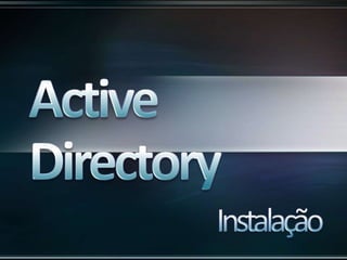 O documento descreve os passos para instalar o Windows Server 2003 e configurar o Active Directory, incluindo: selecionar a opção para instalar o Windows Server 2003, aceitar os termos, selecionar a partição de disco, selecionar o sistema de ficheiros, escolher a região, nome e senha do administrador, formato de data e hora, configurar a rede, nome do grupo de trabalho e/ou domínio.