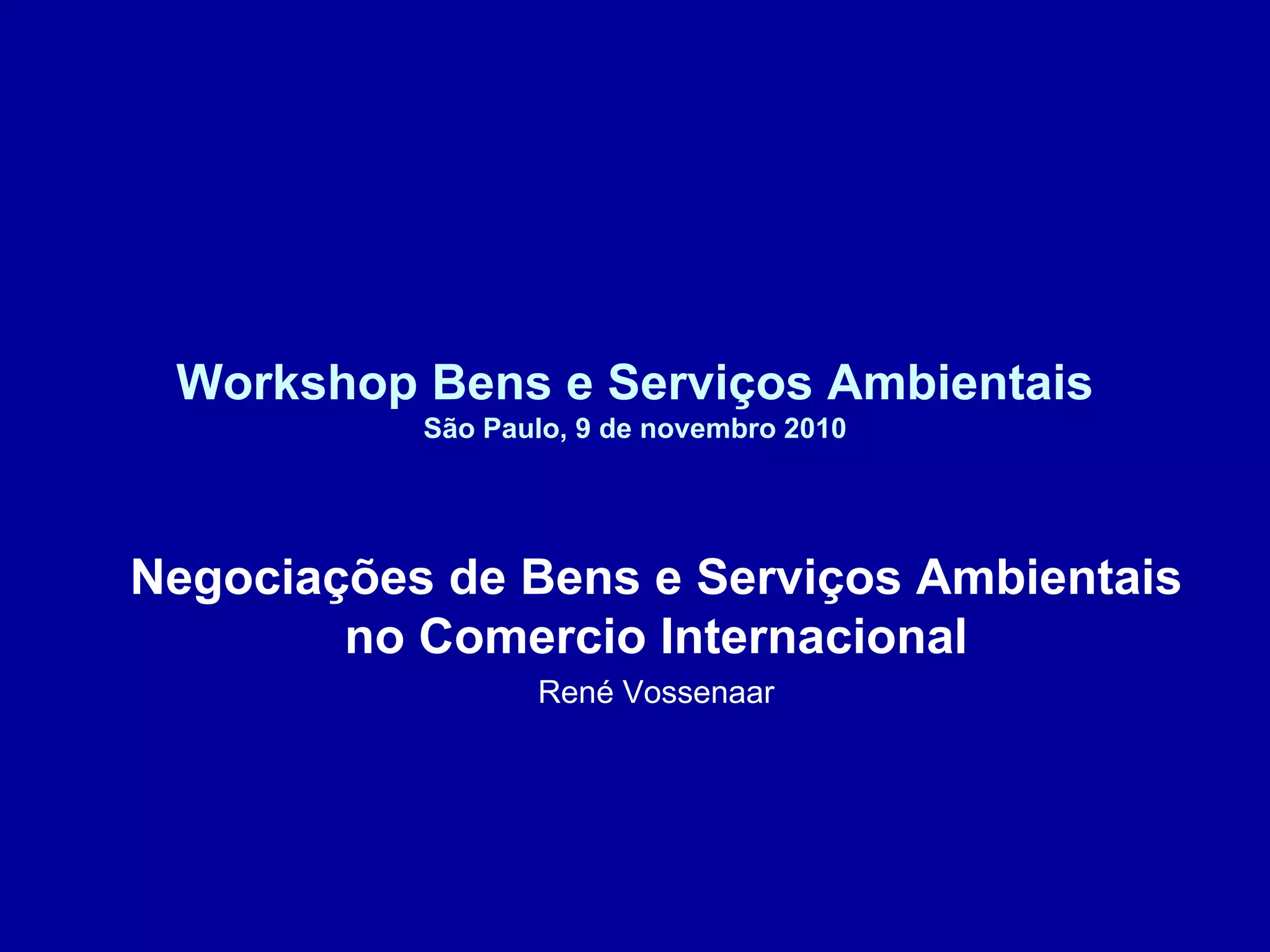 1) O documento discute as negociações sobre bens e serviços ambientais na OMC, incluindo potenciais benefícios e desafios;