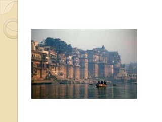 O documento descreve os principais símbolos, origem e evolução, textos de referência, princípios fundamentais e ritos e costumes do Budismo. Os principais símbolos incluem a roda da lei, as três jóias budistas, a mão aberta de Buda e a flor de lótus. O Budismo teve início no século VI a.C. com Siddhartha Gautama e evoluiu ao encontrar novas culturas. O texto fundamental é o Sermão de Benares que descreve o sofrimento e o Óctuplo Camin