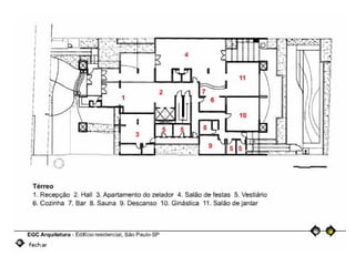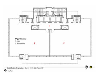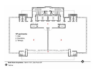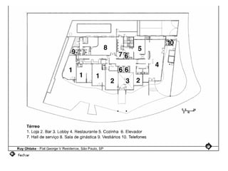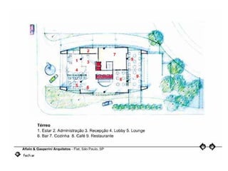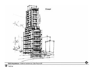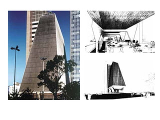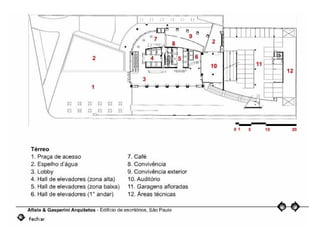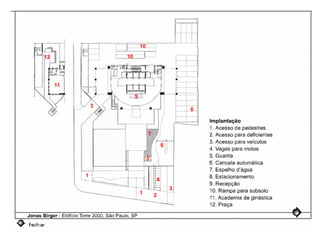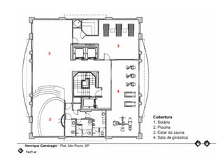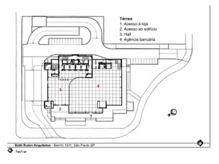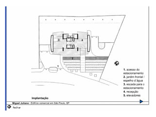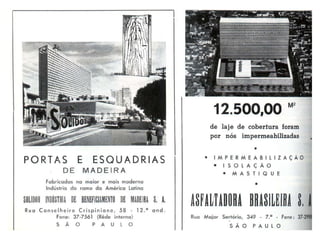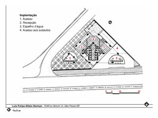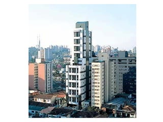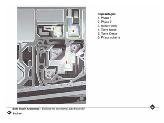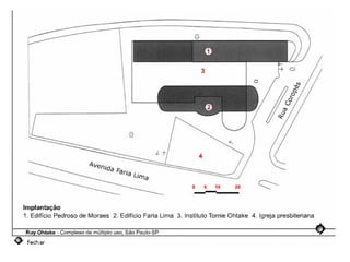 O documento descreve uma obra inacabada na cidade de São Paulo, a antiga sede do Grupo Fenícia, localizada na Rua da Consolação. A estrutura foi iniciada em 1980 mas nunca foi concluída, restando apenas as fundações escondidas no mato. Obras incompletas são comuns na capital paulista e representam incômodos urbanos.
