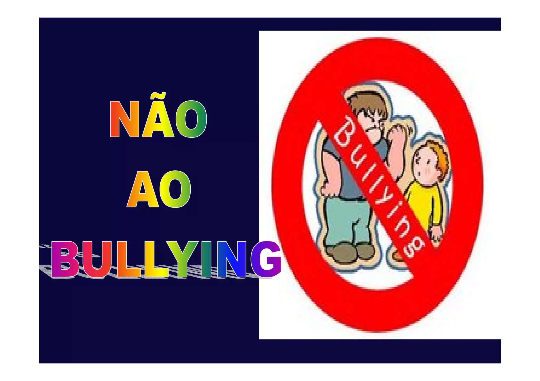 O documento discute bullying nas escolas, definindo-o como violência sistemática contra outros alunos. Apresenta as formas física, verbal e indireta de bullying, e seus efeitos negativos nas vítimas e testemunhas. Também discute as características e consequências do bullying, e o que as vítimas devem e não devem fazer.