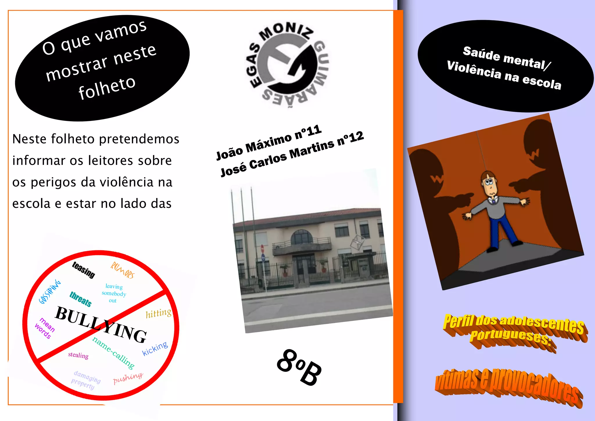 Este documento discute os perigos da violência na escola. Ele explica que alunos com mais de 16 anos que cometem bullying podem ser condenados a até 5 anos de prisão, e até 10 anos se resultar na morte da vítima. Também descreve que agressores geralmente vêm de famílias desestruturadas com pouca empatia, enquanto vítimas são crianças sem habilidades para se defender.