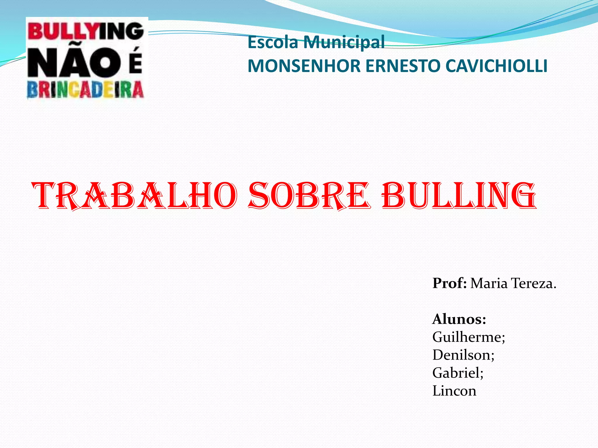 O documento discute bullying na escola, definindo o termo, caracterizando vítimas e agressores, e sugerindo ações que a escola e família podem tomar para prevenir e lidar com bullying. Ele fornece detalhes sobre como identificar vítimas e agressores de bullying na escola e em casa, além de discutir penalidades legais para agressores e iniciativas que a escola e família podem implementar.