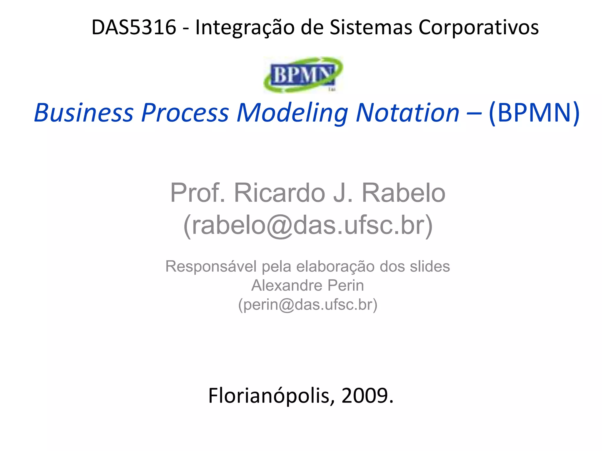 O documento apresenta a notação BPMN (Business Process Modeling Notation) para modelagem de processos de negócio. Discute a motivação, história, definição, objetivo e elementos da notação BPMN, incluindo eventos, atividades, gateways, pools e lanes. Também mostra exemplos, ferramentas de edição e implementações da especificação BPMN.