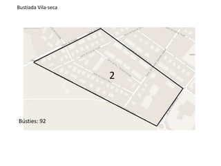 O documento lista 30 entradas da "Bustiada Vila-seca" com o número de "Bústies" variando de 40 a 475 em várias entradas, enquanto outras entradas não fornecem o número.