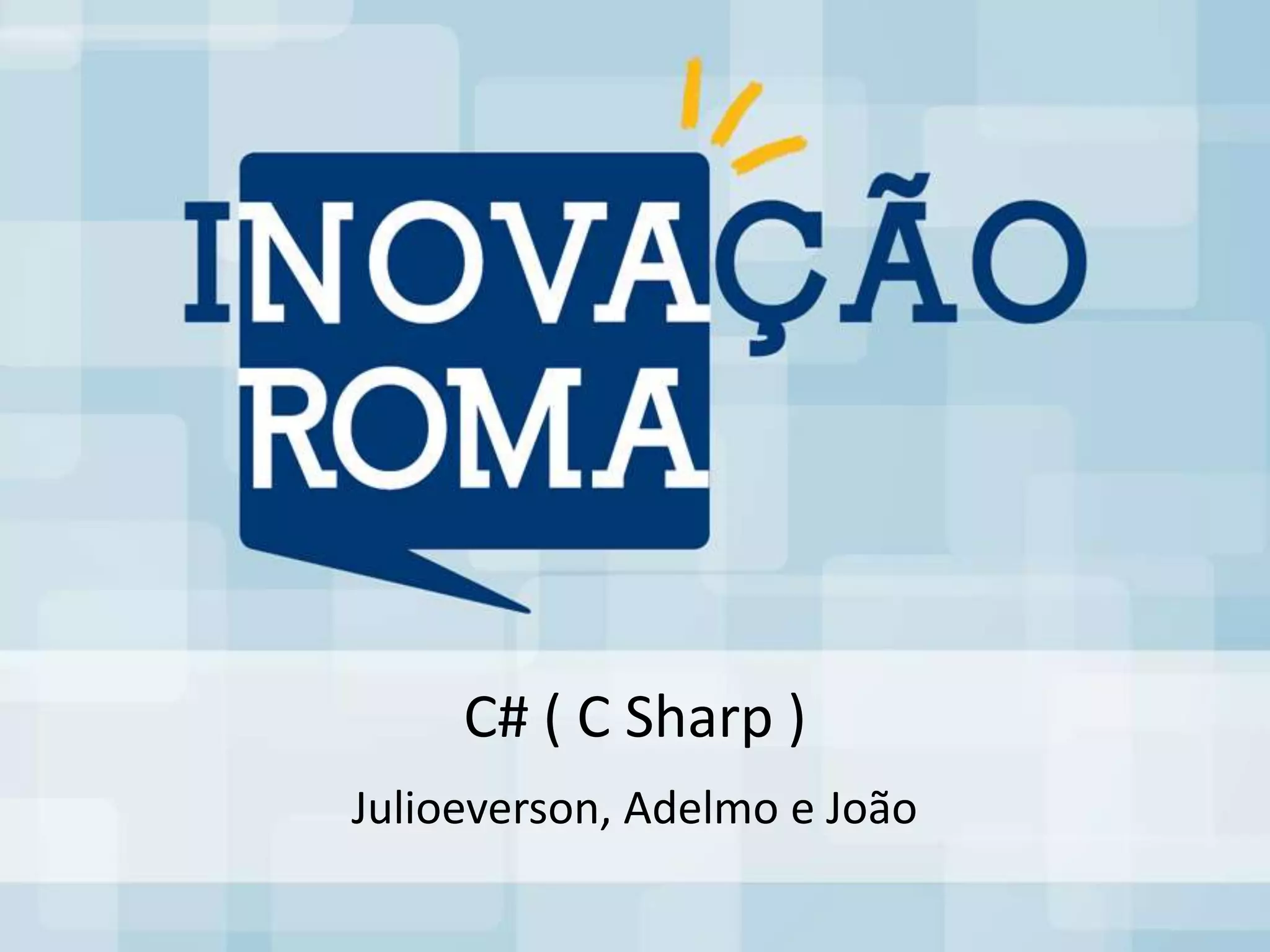A linguagem C# foi desenvolvida pela Microsoft no ano 2000 com base na linguagem C++. C# é orientada a objetos e compatível com várias plataformas, funcionando na plataforma .NET da Microsoft. A linguagem oferece desempenho e segurança ao programador.