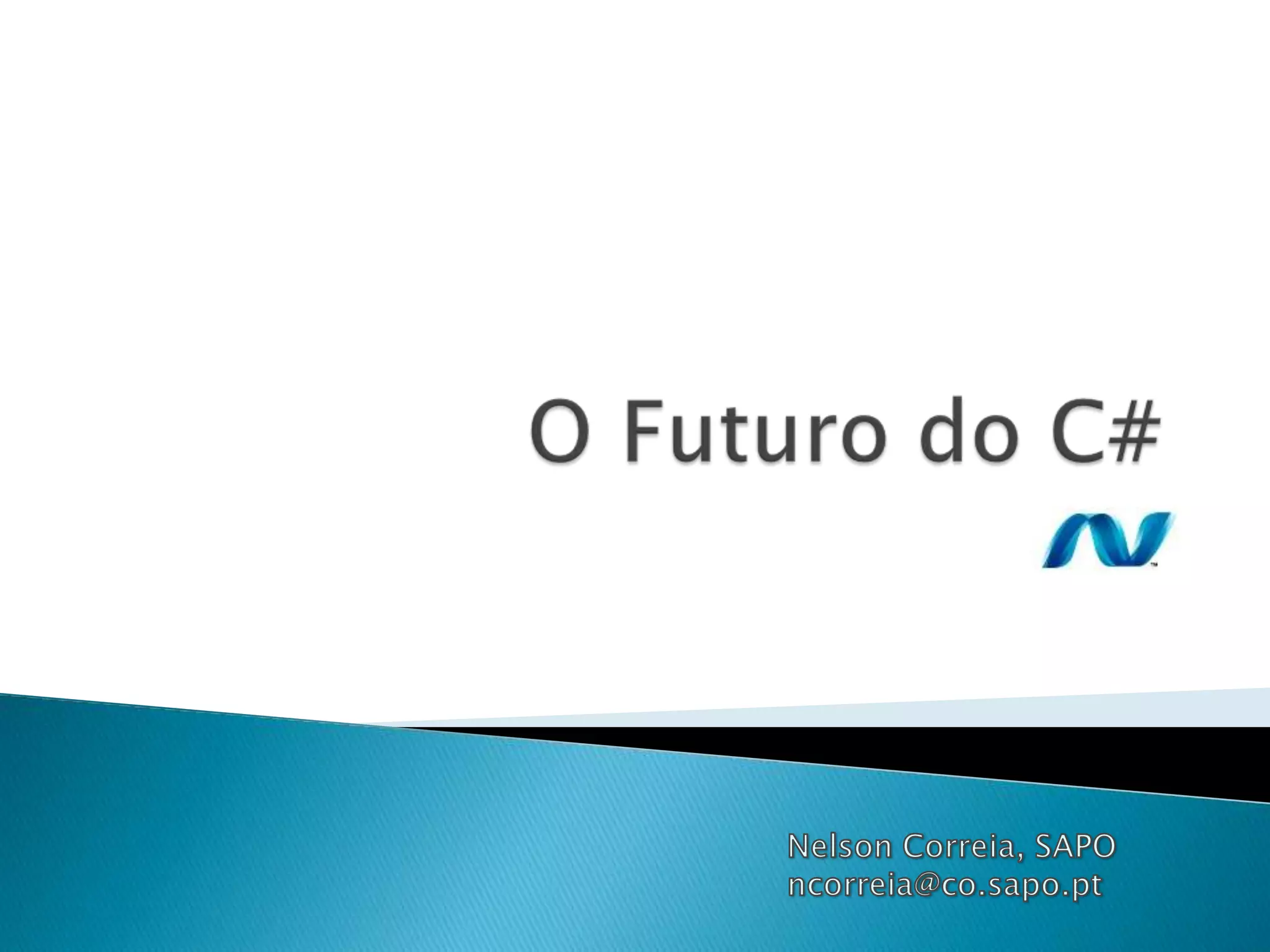 O documento descreve as principais características das versões do C#: C# 1.0 introduziu código gerenciado e programação declarativa; C# 2.0 incluiu genéricos; C# 3.0 trouxe LINQ e query integrada à linguagem; e C# 4.0 expandiu a programação dinâmica com parâmetros opcionais, argumentos nomeados e co-contravariância de tipos genéricos.